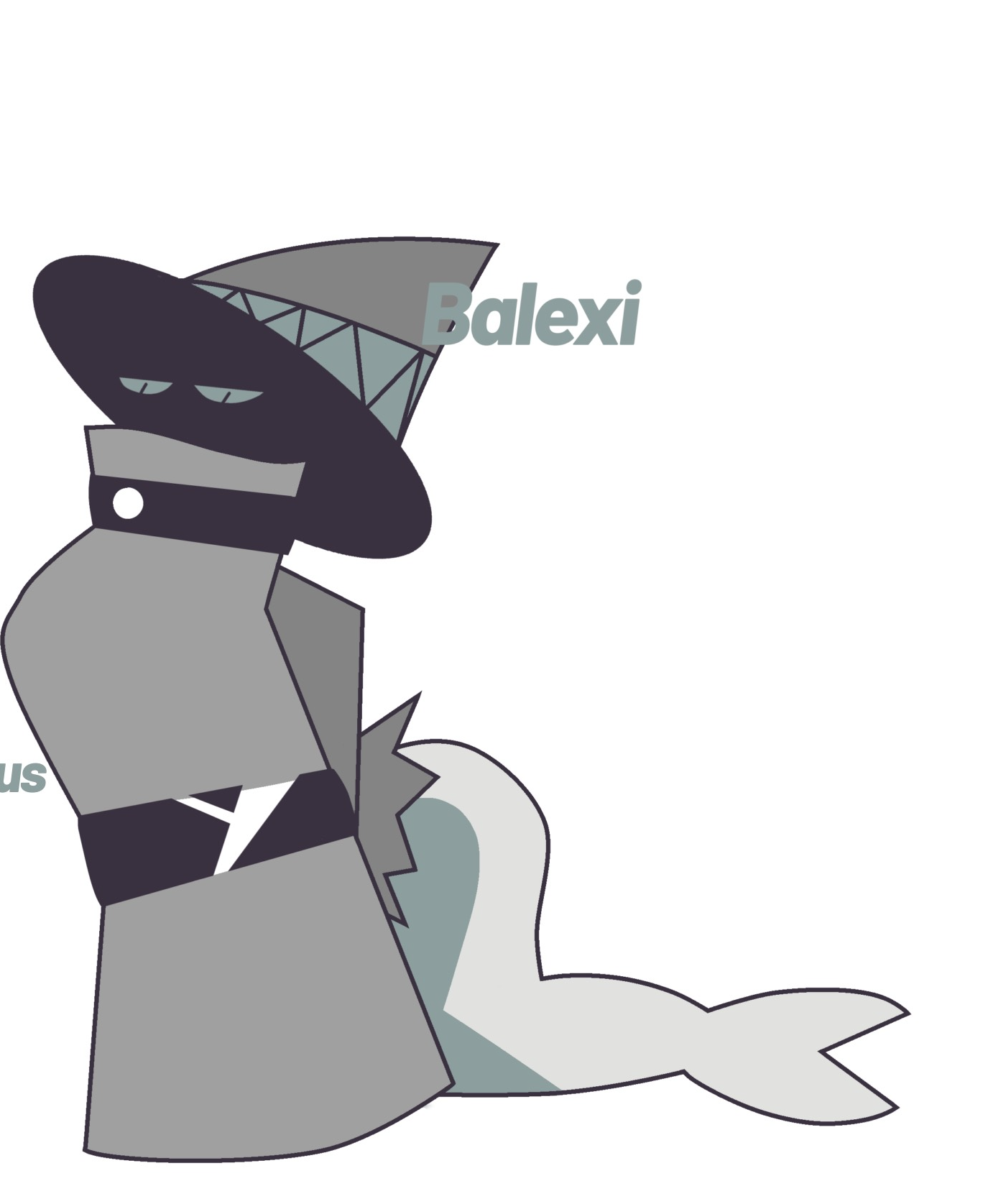 Balexi is described as an 18-year-old Beluga whale in a trench coat,